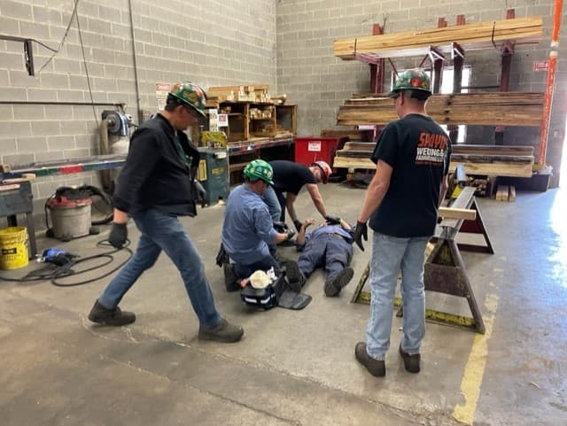 - Prioritizing First Aid: At High, we provide the time and resources for coworkers to receive first aid, CPR, and Automated External Defibrillator (AED) certification training. Currently, there are approximately 300 High coworkers across all our business units who have completed this training – which is conducted jointly by High Corporate EHS team members and Lancaster EMS. High has also provided AEDs at all our manufacturing facilities as well as at each High-owned hotel and residential property. High’s Corporate EHS team facilitates first aid team triage training at our manufacturing facilities. As part of the training, coworkers serve as reenactors for injury scenarios and first aid team members respond with and follow through on emergency care. At High Steel, emergency drills are also conducted with local fire and EMS responders.